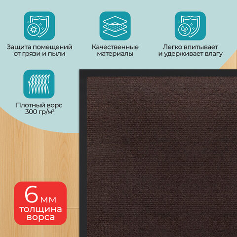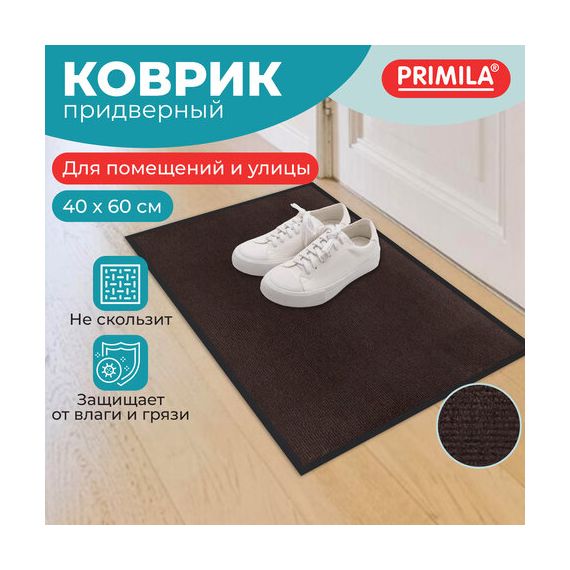 Коврик придверный 40х60 см, КОРИЧНЕВЫЙ, влаго-грязезащитный, 300 г/м2, рубчик, PRIMILA (ПРИМИЛА) STANDARD, 701014