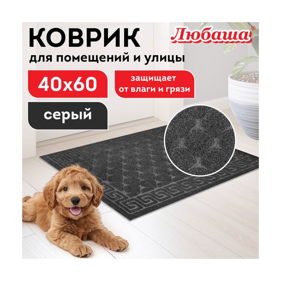 Коврик придверный 40х60 см, СЕРЫЙ, грязезащитный, 430 г/м2, фактурный рисунок ЧЕШУЙКИ, ЛЮБАША, 701058