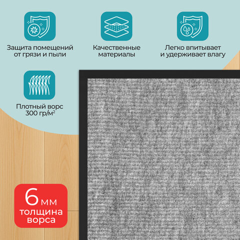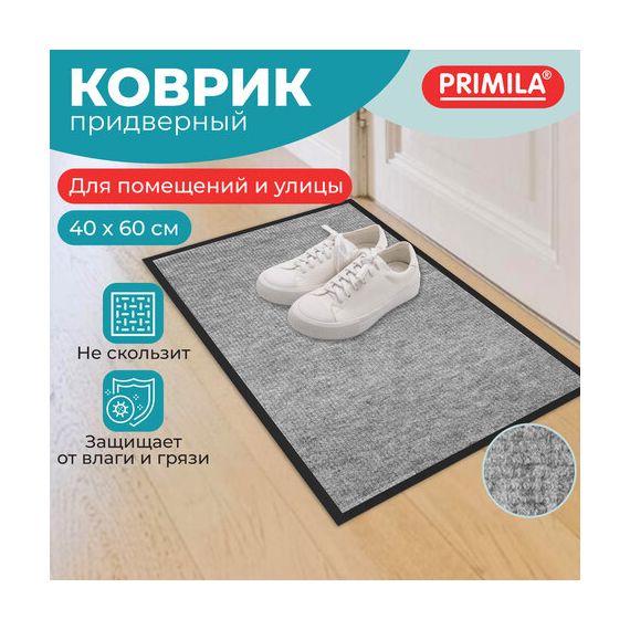 Коврик придверный 40х60 см, СЕРЫЙ, влаго-грязезащитный, 300 г/м2, мелкий рубчик, PRIMILA (ПРИМИЛА) STANDARD, 701018