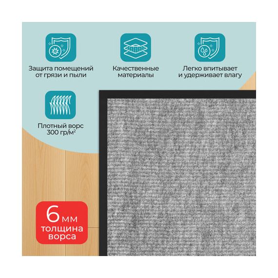 • Высокая впитывающая способность: коврик изготовлен из специальных материалов, которые эффективно поглощают влагу и грязь, предотвращая их распространение по вашему дому.