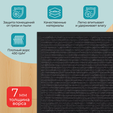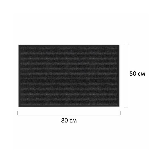 Коврик придверный 50х80 см, ЧЕРНЫЙ, влаго-грязезащитный, 450 г/м2, ребристый, PRIMILA (ПРИМИЛА) EXTRA, 701028