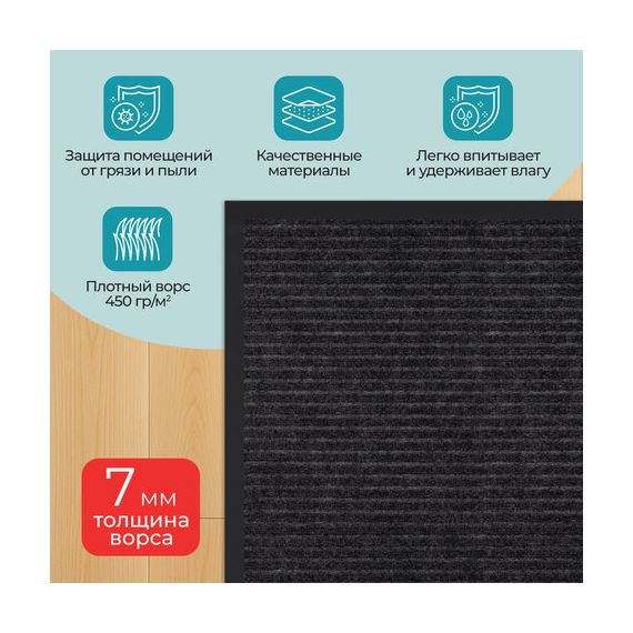 • Высокая впитывающая способность: коврик изготовлен из специальных материалов, которые эффективно поглощают влагу и грязь, предотвращая их распространение по вашему дому.