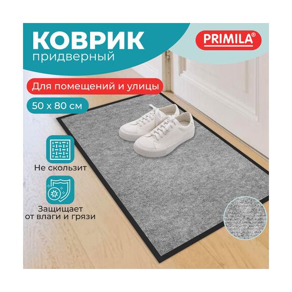 Коврик придверный 50х80 см, СЕРЫЙ, влаго-грязезащитный, 300 г/м2, мелкий рубчик, PRIMILA (ПРИМИЛА) STANDARD, 701019