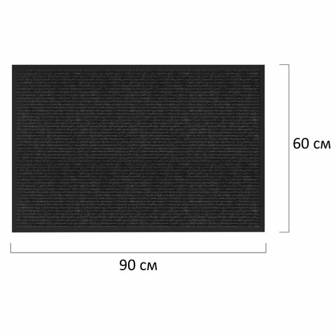 Коврик придверный 60х90 см, ЧЕРНЫЙ, влаго-грязезащитный, 450 г/м2, ребристый, PRIMILA (ПРИМИЛА) EXTRA, 701029