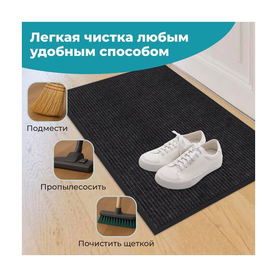 • Высокая впитывающая способность: коврик изготовлен из специальных материалов, которые эффективно поглощают влагу и грязь, предотвращая их распространение по вашему дому.