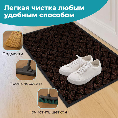 Коврик придверный 60х90 см, КОРИЧНЕВЫЙ, влаго-грязезащитный, 450 г/м2, плетение, PRIMILA (ПРИМИЛА) KRAFT, 701049
