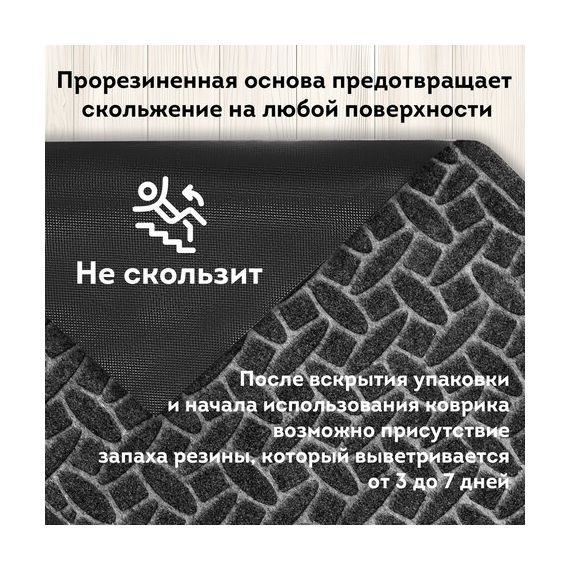 Коврик придверный 60х90 см, СЕРЫЙ, грязезащитный, 430 г/м2, фактурный рисунок АЛМАЗ, ЛЮБАША, 701055