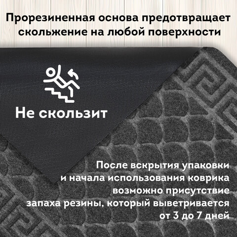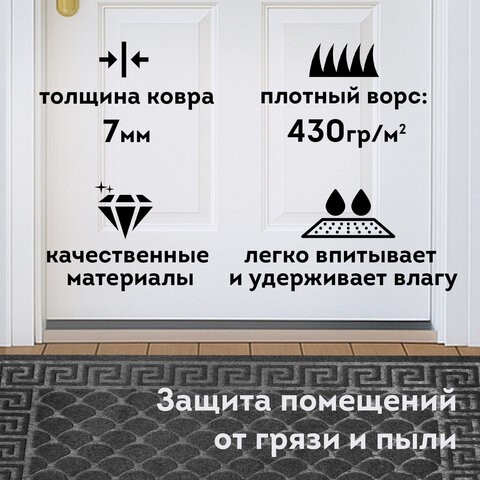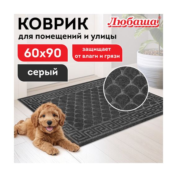 Коврик придверный 60х90 см, СЕРЫЙ, грязезащитный, 430 г/м2, фактурный рисунок ЧЕШУЙКИ, ЛЮБАША, 701061