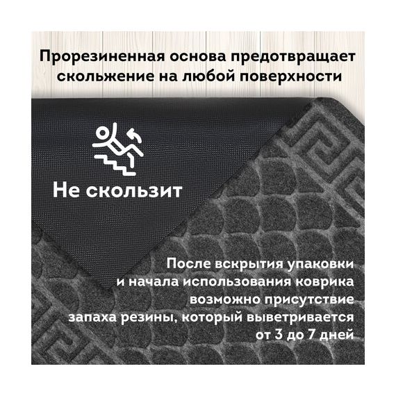 Во избежание скольжения рекомендуется укладывать коврик на чистую увлажненную поверхность (пыль и песок повышают вероятность скольжения ковра).
