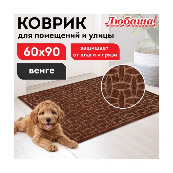 Коврик придверный 60х90 см, ВЕНГЕ, грязезащитный, 430 г/м2, фактурный рисунок АЛМАЗ, ЛЮБАША, 701056