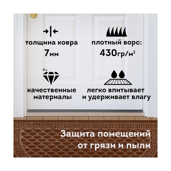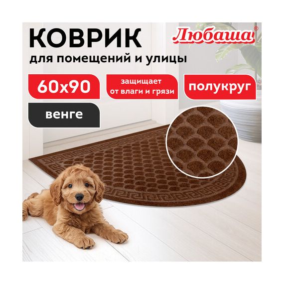 Коврик придверный 60х90 см, ВЕНГЕ, грязезащитный, 430 г/м2, ПОЛУКРУГ, фактурный ЧЕШУЙКИ, ЛЮБАША, 701053