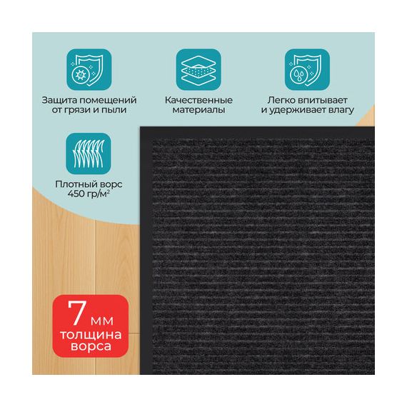 • Высокая впитывающая способность: коврик изготовлен из специальных материалов, которые эффективно поглощают влагу и грязь, предотвращая их распространение по вашему дому.