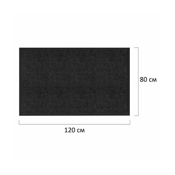 Коврик придверный 80х120 см, ЧЕРНЫЙ, влаго-грязезащитный, 450 г/м2, ребристый, PRIMILA (ПРИМИЛА) EXTRA, 701030