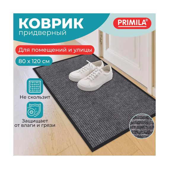 Коврик придверный 80х120 см, СЕРЫЙ, влаго-грязезащитный, 450 г/м2, ребристый, PRIMILA (ПРИМИЛА) EXTRA, 701025
