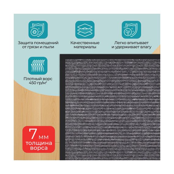 • Высокая впитывающая способность: коврик изготовлен из специальных материалов, которые эффективно поглощают влагу и грязь, предотвращая их распространение по вашему дому.