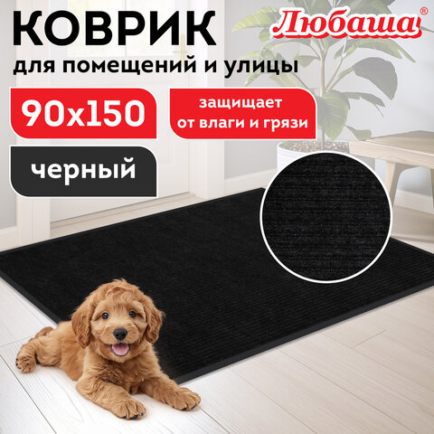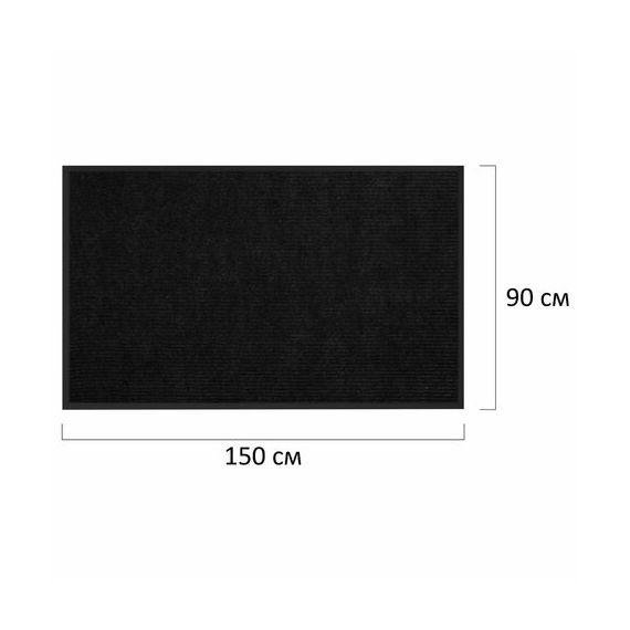 Коврик придверный 90х150 см, ЧЕРНЫЙ, влаго-грязезащитный, 430 г/м2, ребристый, ЛЮБАША СТАНДАРТ, 701038