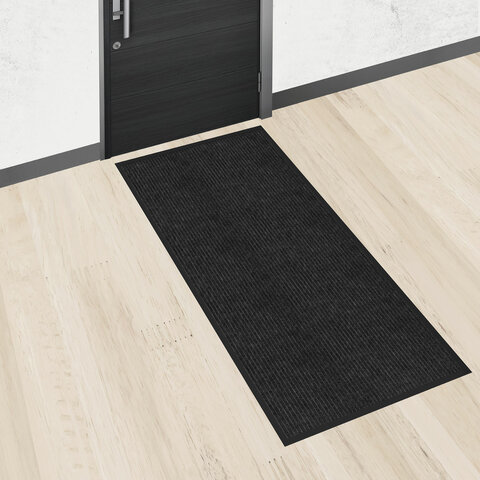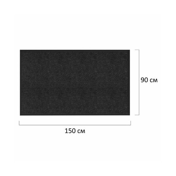 Коврик придверный 90х150 см, ЧЕРНЫЙ, влаго-грязезащитный, 450 г/м2, ребристый, PRIMILA (ПРИМИЛА) EXTRA, 701031