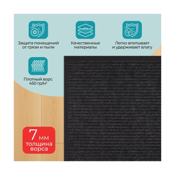 • Высокая впитывающая способность: коврик изготовлен из специальных материалов, которые эффективно поглощают влагу и грязь, предотвращая их распространение по вашему дому.