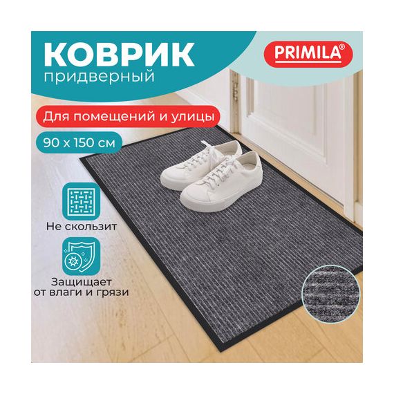 Коврик придверный 90х150 см, СЕРЫЙ, влаго-грязезащитный, 450 г/м2, ребристый, PRIMILA (ПРИМИЛА) EXTRA, 701026