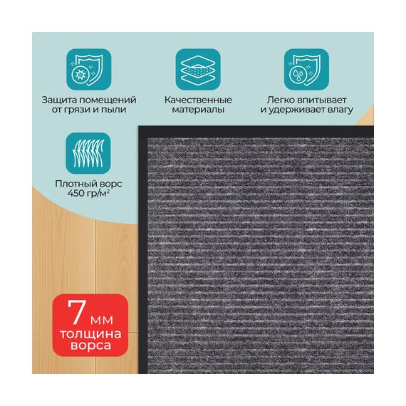 • Высокая впитывающая способность: коврик изготовлен из специальных материалов, которые эффективно поглощают влагу и грязь, предотвращая их распространение по вашему дому.