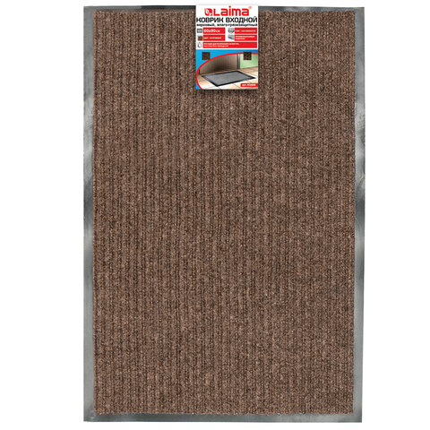 Коврик входной ворсовый влаго-грязезащитный 60х90 см, толщина 7 мм, ребристый, коричневый, LAIMA, 602868