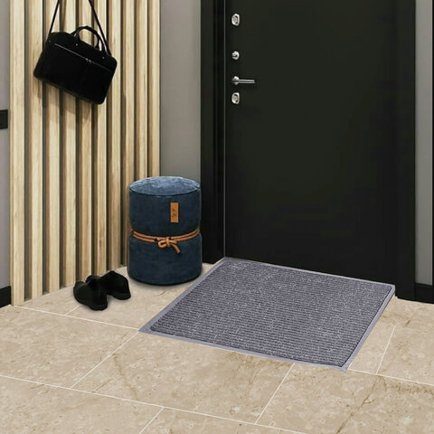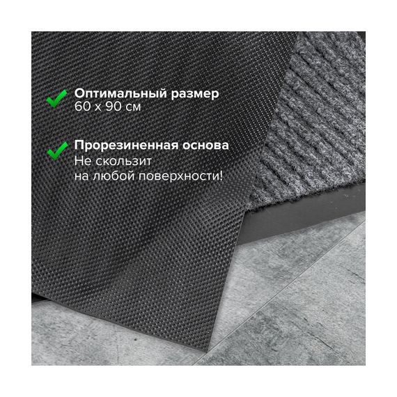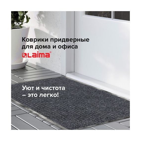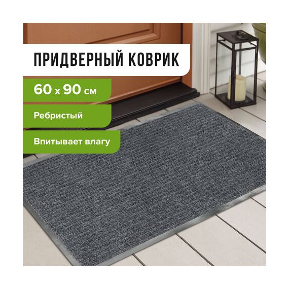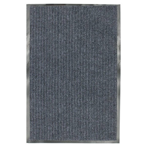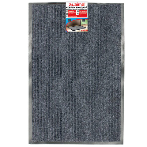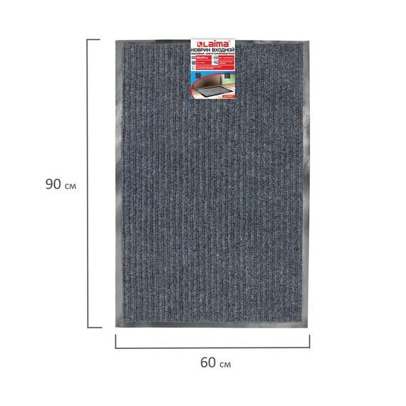 Коврик входной ворсовый влаго-грязезащитный 60х90 см, толщина 7 мм, ребристый, серый, LAIMA, 602867