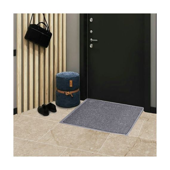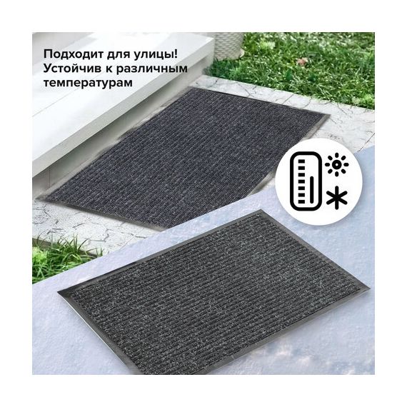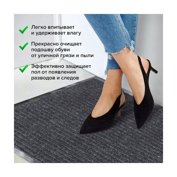 Нескользящая основа не дает влаге проникнуть на пол, предотвращает скольжение и возможные травмы при падении. Ворсовое покрытие с ребристой текстурой удерживает влагу и грязь. Размер – 60х90 см. Толщина – 7 мм. Ворс изготовлен из 100% полиэстера. Коврик выполнен в сером цвете.