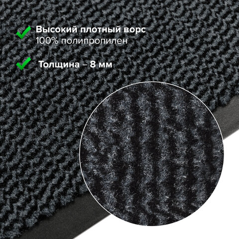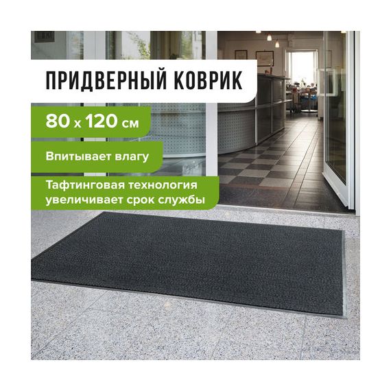 Коврик входной ИЗНОСОСТОЙКИЙ влаговпитывающий 80х120 см, толщина 8 мм, ТАФТИНГ, серый, LAIMA EXPERT, 606885