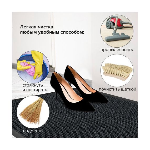 Высокий плотный ворс коврика, произведенный по тафтинговой технологии, отличается повышенным комфортом и износостойкостью. Коврик прекрасно впитывает и удерживает влагу, предотвращая появление на полу грязных следов и разводов. Не скользит и легко чистится. Подложка - ПВХ, ворс - 100% полипропилен. Размер - 80х120 см. Толщина - 8 мм. Коврик выполнен в сером цвете.