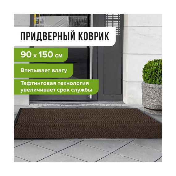 Коврик входной ИЗНОСОСТОЙКИЙ влаговпитывающий 90х150 см, толщина 8 мм, ТАФТИНГ, коричневый, LAIMA EXPERT, 606890