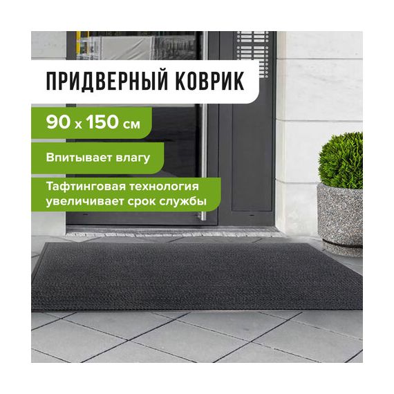 Коврик входной ИЗНОСОСТОЙКИЙ влаговпитывающий 90х150 см, толщина 8 мм, ТАФТИНГ, серый, LAIMA EXPERT, 606889