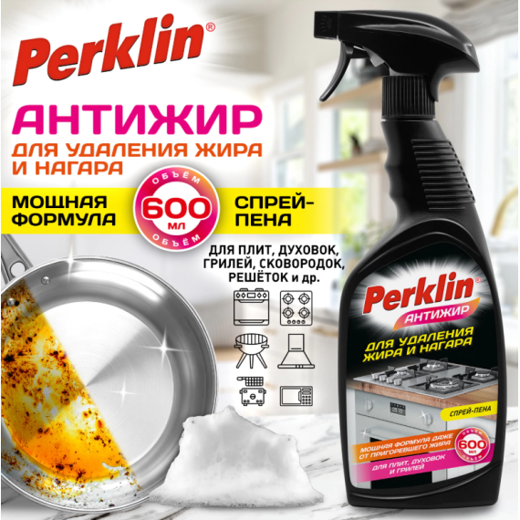 Средство для чистки плит, духовок, грилей от жира/нагара PERKLIN (ПЕРКЛИН) АНТИЖИР, 600 мл