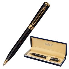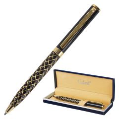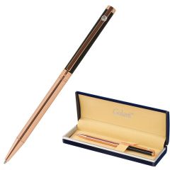Утонченная модель ручки с корпусом из латуни черного и золотистого цветов с золотистыми деталями. Синий цвет чернил; длина стержня составляет 98 мм, а диаметр пишущего узла - 0,7 мм. Поставляется в индивидуальном подарочном футляре. Подходит для гравировки.