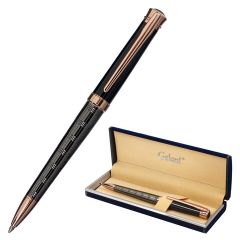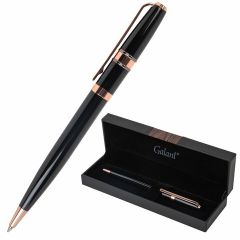 Стильная модель ручки с корпусом из латуни черного цвета и деталями в цвете розовое золото. Синий цвет чернил; длина стержня составляет 98 мм, а диаметр пишущего узла - 0,7 мм. Поставляется в индивидуальном подарочном футляре. Подходит для гравировки.