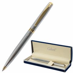 Утонченная модель ручки с корпусом из латуни серебристого цвета, золотыми деталями и декоративным узором прекрасно лежит в руке. Синий цвет чернил; длина стержня составляет 98 мм, а диаметр пишущего узла - 0,7 мм. Поставляется в индивидуальном подарочном футляре. Подходит для гравировки.