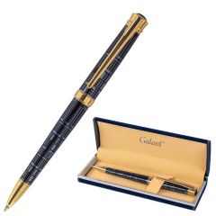 Изящная модель ручки с корпусом из латуни темно-синего цвета с оригинальным рисунком и золотыми деталями. Синий цвет чернил; длина стержня составляет 98 мм, а диаметр пишущего узла - 0,7 мм. Поставляется в индивидуальном подарочном футляре. Подходит для гравировки.