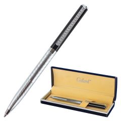 Утонченная модель ручки с корпусом из латуни черного цвета с декоративным узором на колпачке и серебристыми деталями. Синий цвет чернил; длина стержня составляет 98 мм, а диаметр пишущего узла - 0,7 мм. Поставляется в индивидуальном подарочном футляре. Подходит для гравировки.
