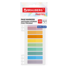 Пластиковые полупрозрачные закладки пастельных тонов BRAUBERG PASTEL акцентируют внимание на важных страницах книги, журнала, каталога и др. Набор пластиковых закладок 10 пастельных цветов размером 45х10 мм состоит из 200 листов (по 20 закладок каждого цвета). Закладки легко клеятся к любой поверхности и не оставляют следов. Материал закладок позволяет делать надписи ручкой и карандашом. Закладки BRAUBERG PASTEL будут всегда под рукой благодаря их специальному креплению, которое идеально подходит для использования вместе с тетрадью на кольцах.