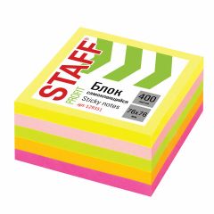 Бумага для заметок с клейким краем STAFF рекомендуется для использования в процессе совещаний, обучения, мозговых штурмов. Идеально подойдет для использования как в офисе, так и дома. Стикеры 5 неоновых цветов (желтый, розовый, зелёный, оранжевый, малиновый) в форме куба 76х76 мм состоят из 400 листов. Плотность бумаги составляет 75 г/м2. Клейкий слой - 22 Н/м. Легко клеятся к любой поверхности. Не оставляют следов. Упакованы в полиэтиленовую пленку. Чтобы стикеры держались дольше, следуйте рекомендациям по использованию: - Отделяйте листы от блока вдоль клеевой полосы, в горизонтальном направлении. Это поможет избежать скручивания и последующего отклеивания стикера. - Убедитесь в отсутствии пыли и грязи на поверхности для приклеивания. Так вы обеспечите наиболее продолжительный срок службы клеевого слоя.