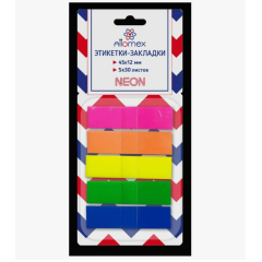 Набор самоклеящихся этикеток-закладок "Attomex" пластиковые полупрозрачные 45x12 мм, 8x25 листов, 8 неоновых цветов, в картонном блистере
