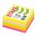 Стикеры 5 неоновых цветов (желтый, розовый, зелёный, оранжевый, малиновый) в форме куба 76х76 мм состоят из 400 листов. Плотность бумаги составляет 75 г/м2. Клейкий слой - 22 Н/м. Легко клеятся к любой поверхности. Не оставляют следов. Упакованы в полиэтиленовую пленку.