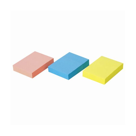 Набор стикеров 3 неоновых цветов (желтый, розовый, голубой) в форме прямоугольника 38х51 мм состоит из 12 блоков по 100 листов каждый. Плотность бумаги составляет 75 г/м2. Клейкий слой - 35 Н/м. Легко клеятся к любой поверхности. Не оставляют следов. Упакованы в картонную коробку.