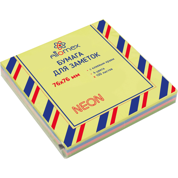 Клейкая бумага для заметок "Attomex" 76x76 мм, 100 листов, офсет 75 (70) г/м², 4 неоновых цвета