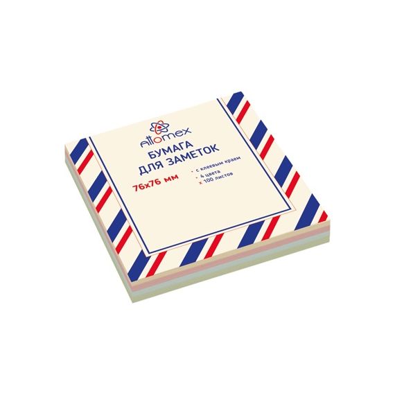 Клейкая бумага для заметок "Attomex" 76x76 мм, 100 листов, офсет 75 (70) г/м², 4 пастельных цвета