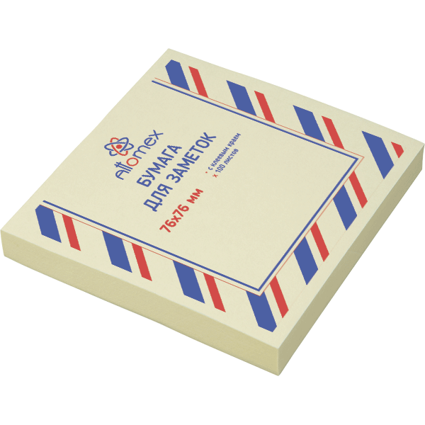 Клейкая бумага для заметок "Attomex" 76x76 мм, 100 листов, офсет 75 (70) г/м², желтая