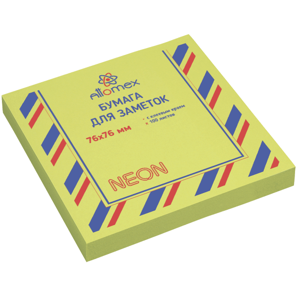 Клейкая бумага для заметок "Attomex" 76x76 мм, 100 листов, офсет 75 г/м², неоновая зеленая