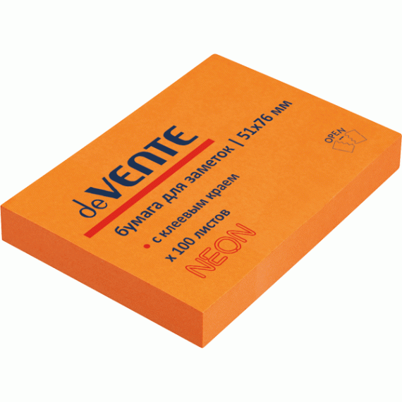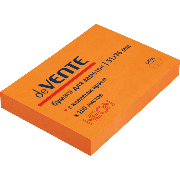 Клейкая бумага для заметок "deVENTE" 51x76 мм, 100 листов, офсет 75 г/м², неоновая оранжевая