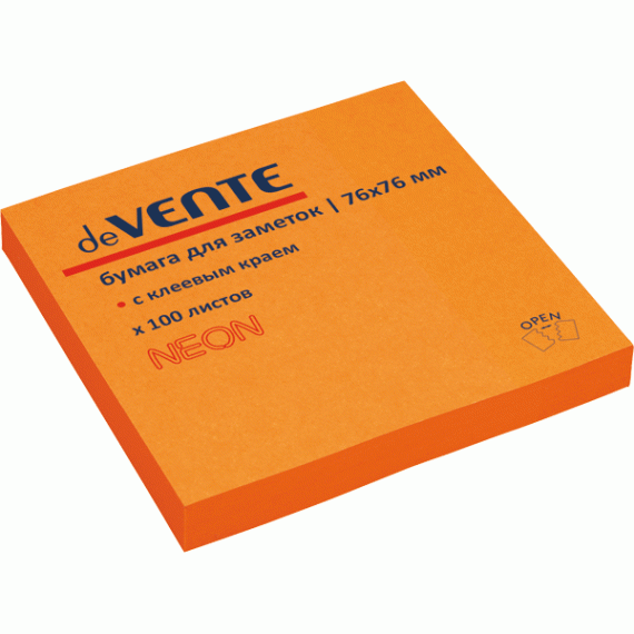 Клейкая бумага для заметок "deVENTE" 76x76 мм, 100 листов, офсет 75 г/м², неоновая оранжевая