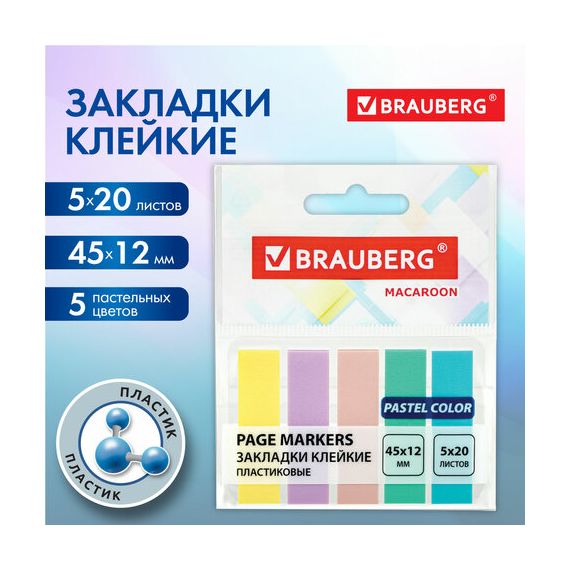 Пластиковые полупрозрачные закладки пастельных тонов BRAUBERG MACAROON акцентируют внимание на важных страницах книги, журнала, каталога и др.