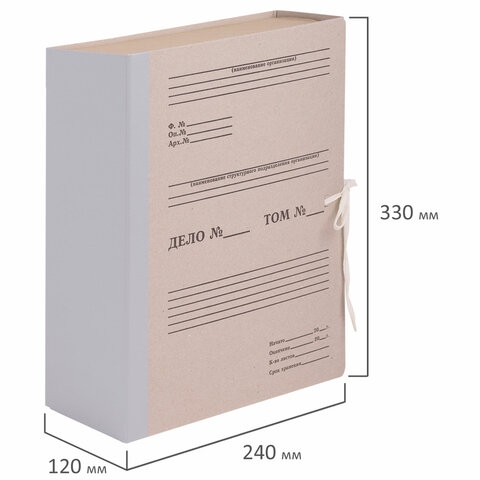 Короб архивный (240х330 мм), 120 мм, 2 завязки, переплетный картон/бумвинил, до 1000 листов, STAFF, 126903